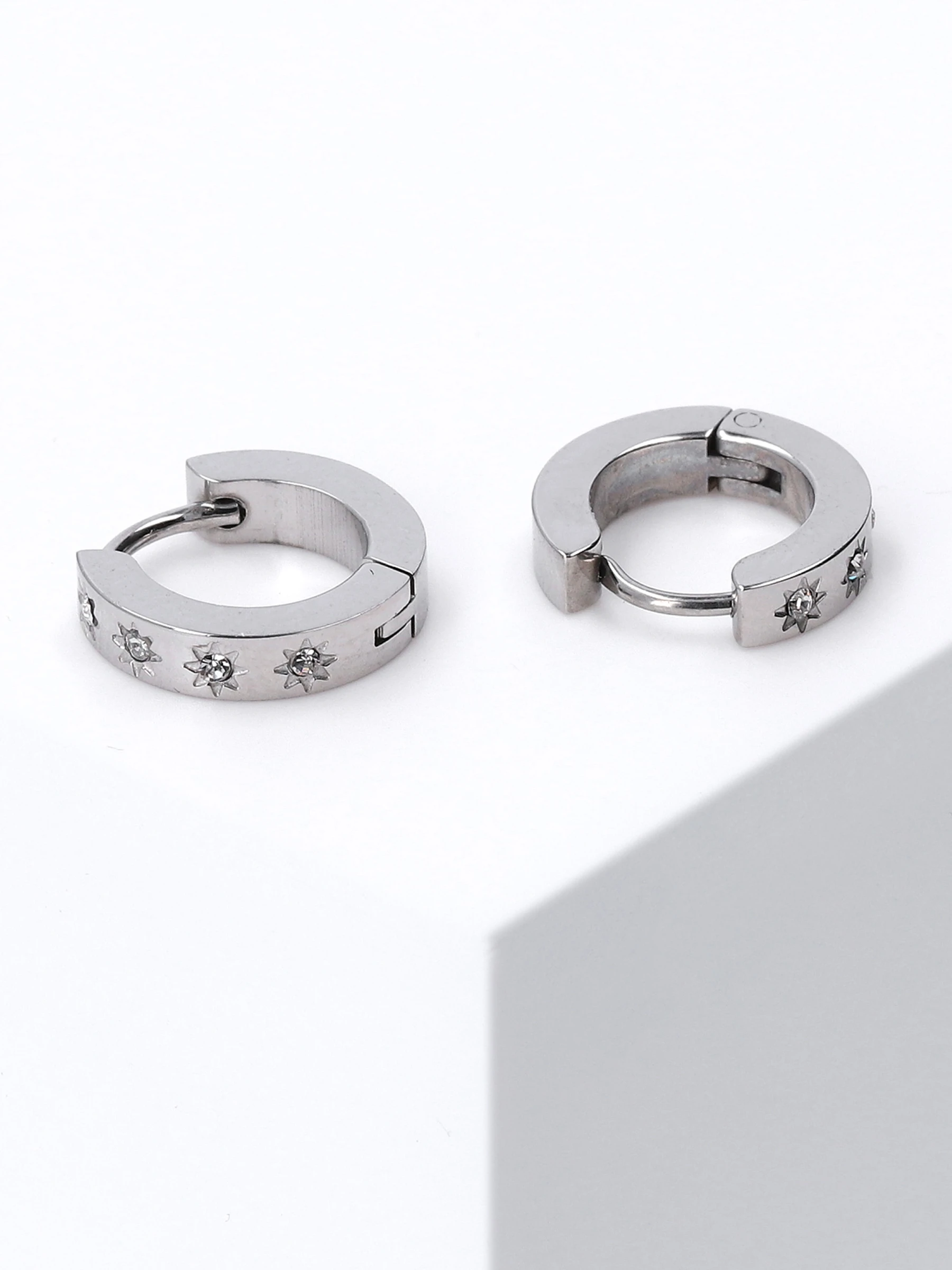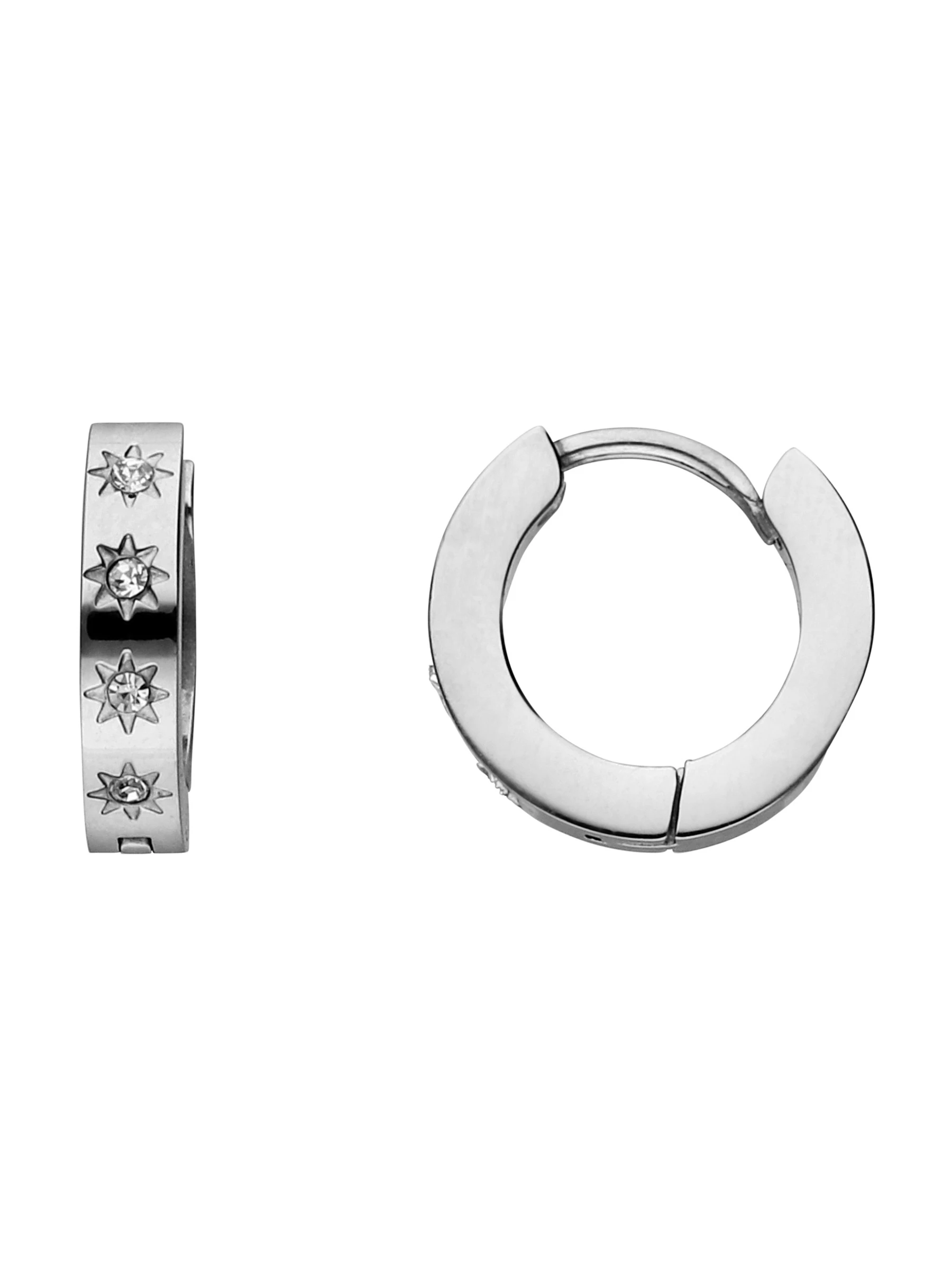 Trendy Stainless Steel Creole mit Sternen-Motiv und funkelnden Strasssteinen – der Ohrring ist ein Must-have.