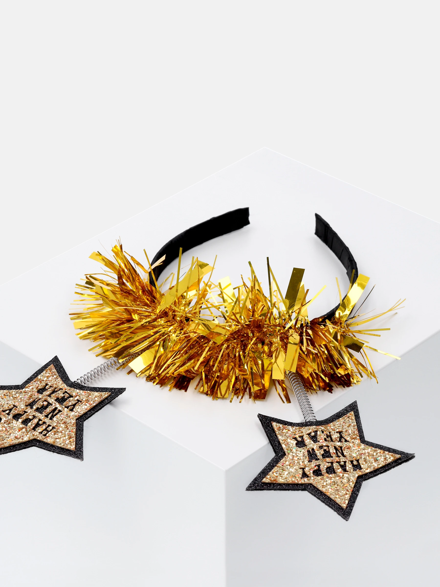 Ein Muss für die Silvester-Party: Der Haarreif mit der Aufschrift “Happy New Year” und glitzernden Ohren ist der ultimative Eyecatcher auf jeder Party. Dieses schöne Accessoire passt wunderbar zu deinem Silvesterparty Outfit.