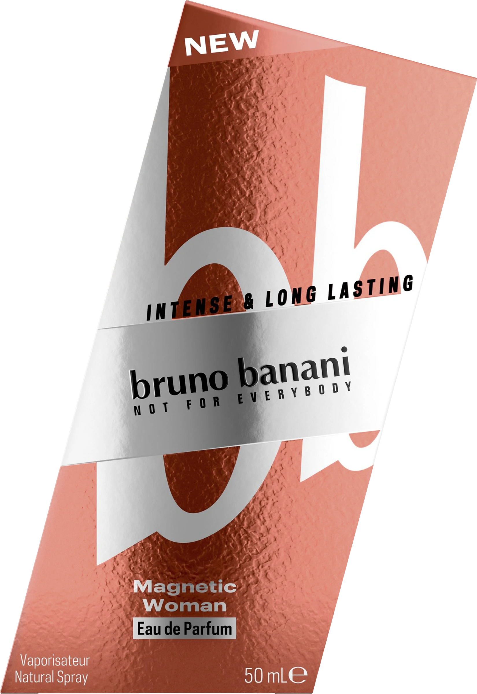 Verführerisch anziehend – bruno banani Magnetic Woman Eau de Parfüm ist betörende Sinnlichkeit mit einem Hauch von Luxus. Edler Jasimin trifft auf süßen Gianduja. Kakao und feinwürzige Zeder.