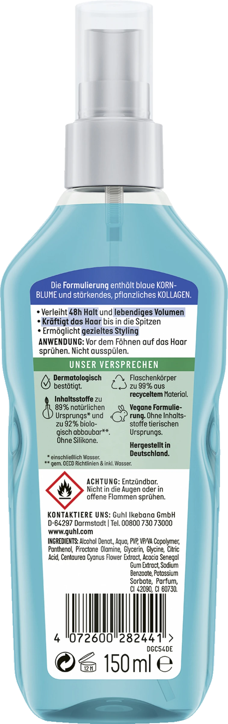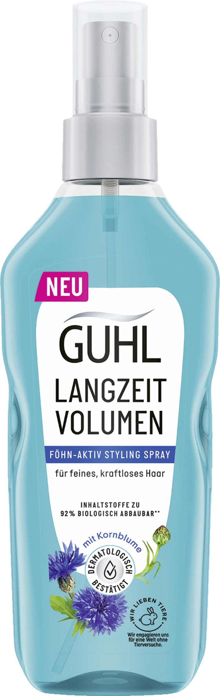 Guhl Langzeit Volumen – Die umweltschonende Serie für kräftiges, voluminöses Haar. Die Langzeit Volumen Serie mit Formulierung aus Kornblumenextrakt und pflanzlichem Kollagen stabilisiert und kräftigt das Haar und schenkt lebendiges Haarvolumen. Die silikonfreie Serie überzeugt mit veganer Rezeptur voller natürlicher, biologisch abbaubarer Inhaltsstoffe und recycelten Verpackungsmaterialien. Hergestellt in Deutschland und ohne Inhaltsstoffe tierischen Ursprungs versorgen die Langzeit Volumen Produkte das Haar umweltfreundlich und nachhaltig mit Fülle und Volumen. Echte Qualität, der du vertrauen kannst, so dass du deinen Wohlfühlmoment unbeschwert genießen kannst. Das ist Guhl. Seit über 75 Jahren nutzen sie ihre Expertise & Leidenschaft und kreieren hochwertige Haarpflegeprodukte, auf die du dich verlassen kannst. Guhl sorgt für sichtbar & spürbar gepflegtes Haar, ist dermatologisch bestätigt, PETA zertifiziert, enthält regionale Inhaltsstoffe und wird in Deutschland hergestellt! Augen zu, Musik an & genießen!