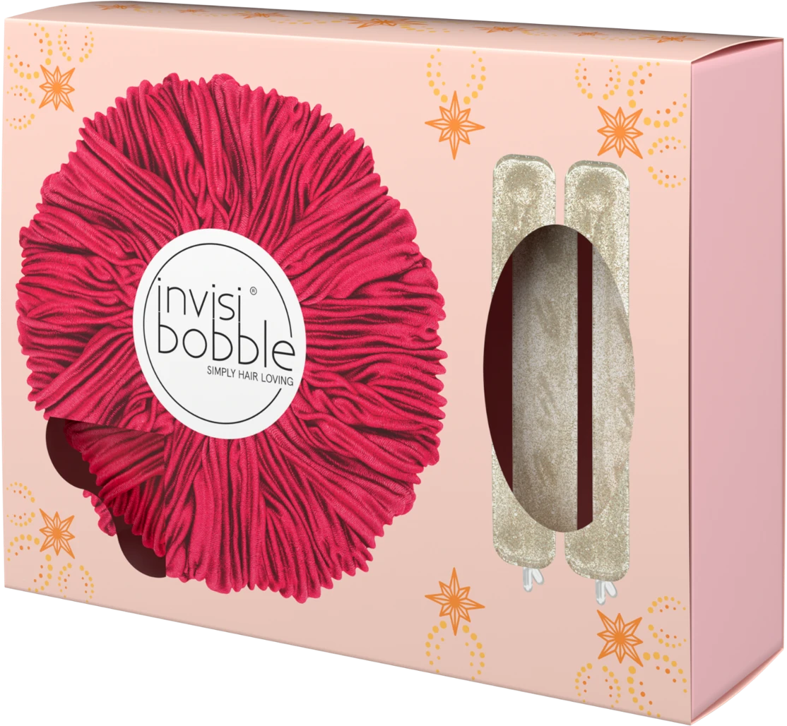 Das Set ist der ideale Begleiter für die Festtage und wertet garantiert jedes Outfit auf. invisibobble® SPRUNCHIE Bestseller und BARRETTE Innovation in limitierten Farben für überlegenen Komfort und trendigen Style. Mit HAIRLOVETECH™.