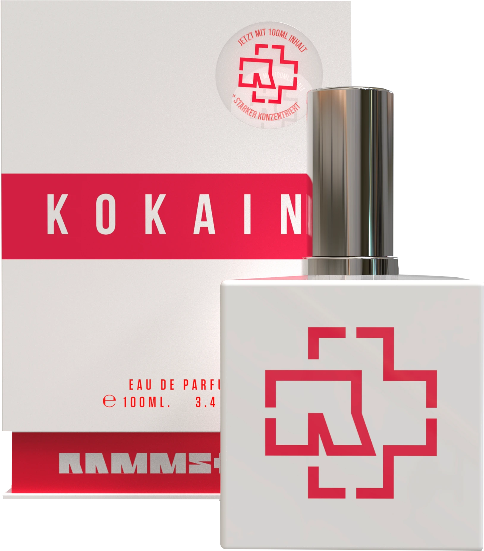 Rammstein sind schon immer ausschließlich nach ihrem eigenen Rhythmus marschiert und haben dabei nicht nur das Regelwerk der Musikindustrie breit grinsend in Brand gesteckt – sondern alles was sie jemals anfassten, gleich mit – und das erfolgreich. Um also so viel vorwegzunehmen: RAMMSTEIN als Parfu¨m ist – analog dem Gesamtkunstwerk – 100% Rammstein, spektakulär und im wahrsten Sinne des Wortes: “Rammstein-esque”. Einzel-Olfaktorien, wie der Duft von reinem Heroin und Kokain eröffnen in der Kopfnote, treffen im Herz auf ein Stakkato kräftiger Noten wie Benzin und Patschuli, um mit verbrannten Hölzern, Leder und dem Geruch von Feuer im Unterbau abzurunden. Ein Parfum fu¨r alle Männer und Frauen, die das Außergewöhnliche lieben. Rammstein KOKAIN – macht su¨chtig.