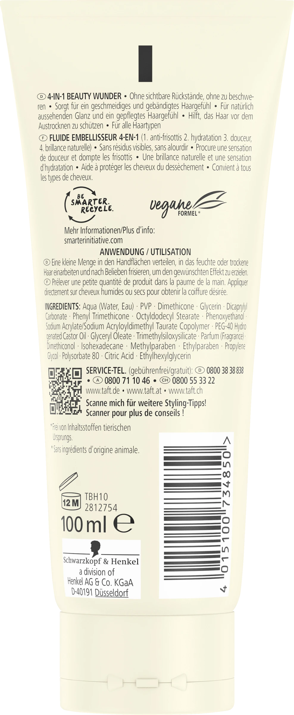 Taft 4-in-1 Fluid sorgt für ein geschmeidiges & gebändigtes Haargefühl ohne Rückstände und ohne zu beschweren. Es hilft, das Haar vor dem Austrocknen zu schützen.