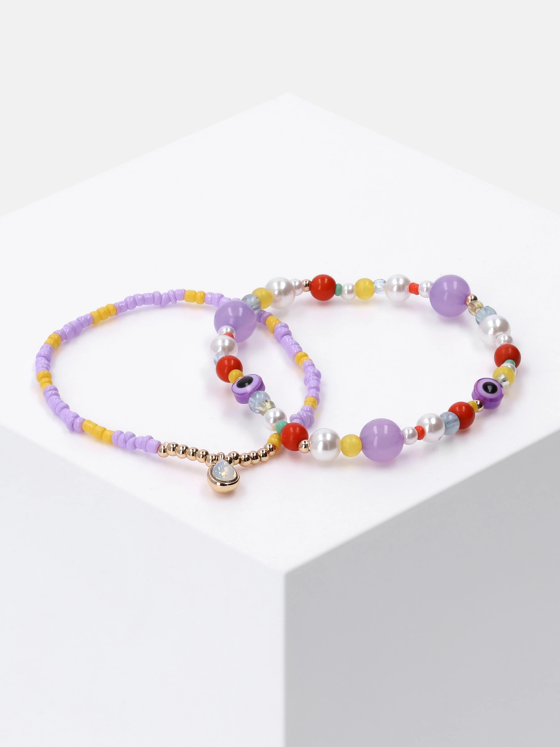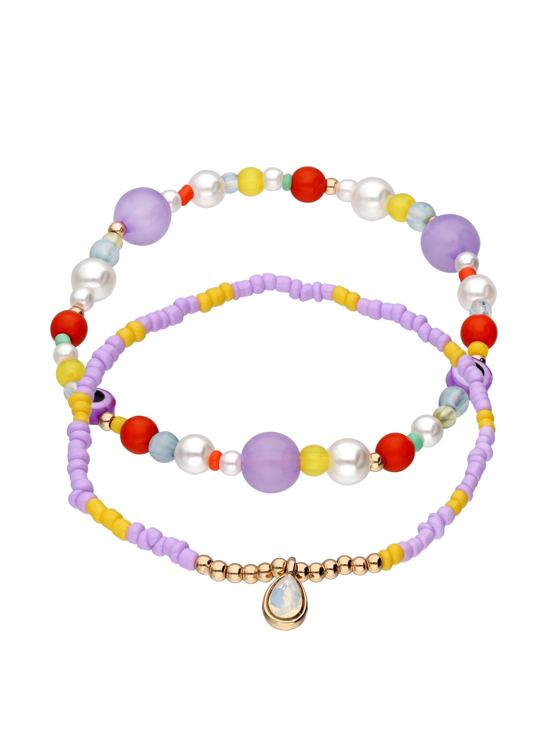 Verzieht mit mehrfarbigen Kunst-, Metall- und Glasperlen ist dieses flexible Armband-Set ein Must-have für jede Saison. Das verspielte Accessoire wird jedem Outfit einen besonderen Touch verleihen. Das perfekte Accessoire für den Alltag oder auf Festivals.