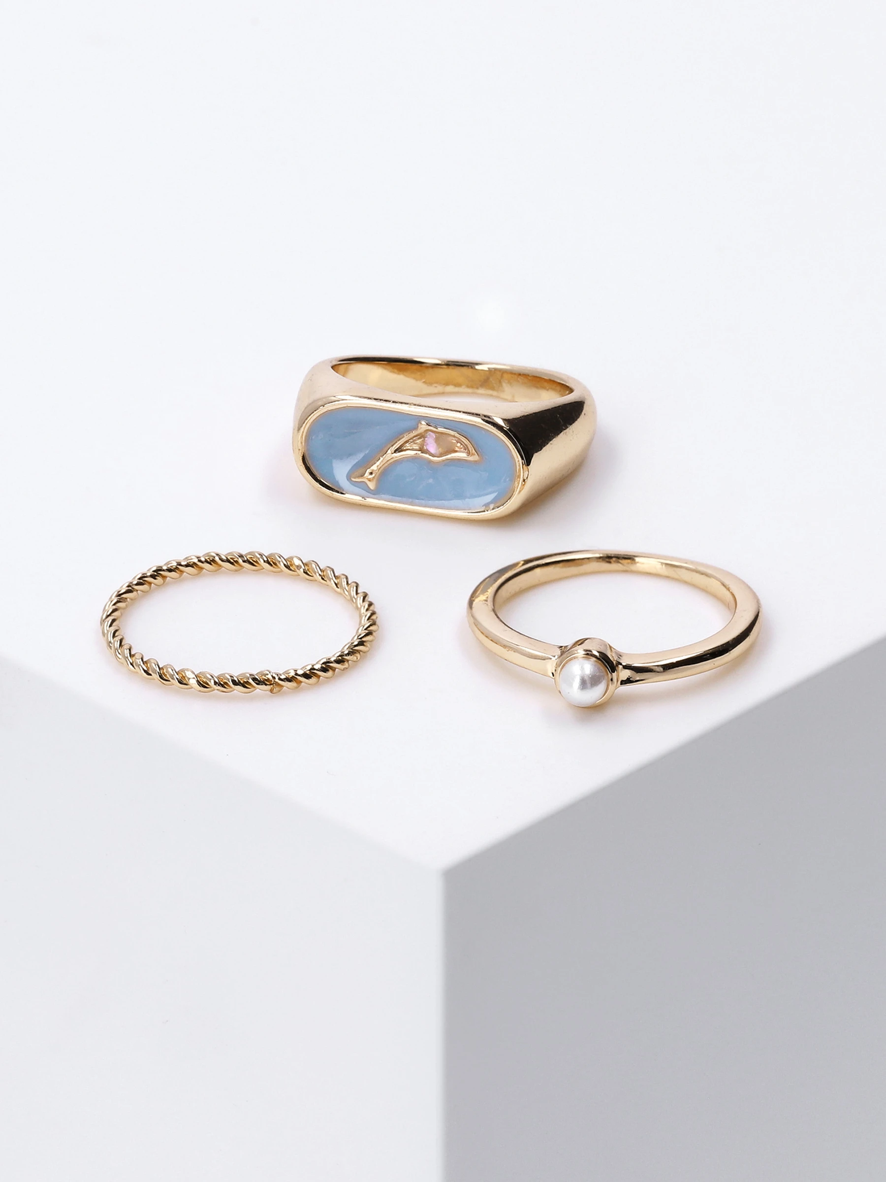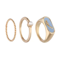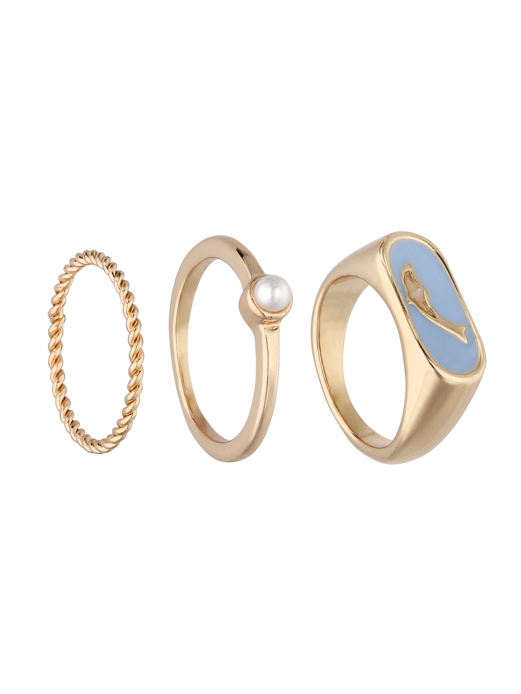 3 Ringe für einen perfekten Stacking-Look mit trendy-elegantem Touch. Ein Schmuckstück-Set, das sich ideal mit ähnlich designten Accessoires kombinieren lässt und einen eleganten Look garantiert.